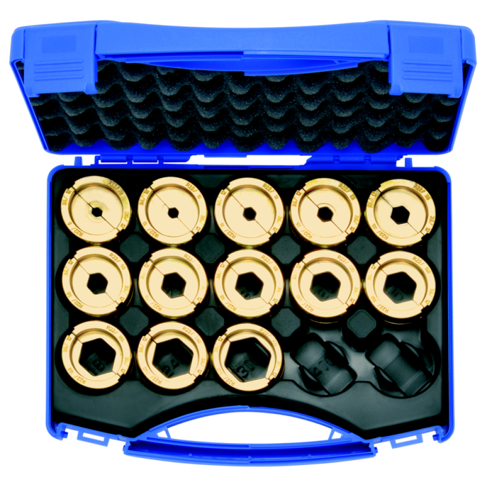 Zestaw 13 sztuk matryc R22 w plastikowej walizce. Zakres 6 - 300 mm2.