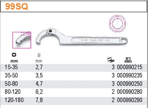 Klucze hakowe z pazurem, przegubowe Beta 99SQ