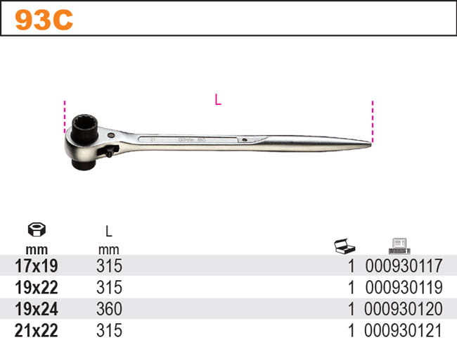 Klucze nasadowe jednostronne mechanizmem zapadkowym do rusztowań Beta 93C