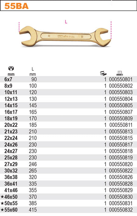Klucze płaskie dwustronne nieiskrzące, ze stopu miedzi i berylu