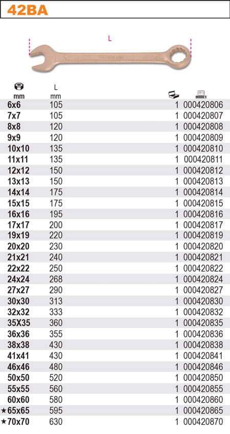 Klucze płasko-oczkowe nieiskrzące, ze stopu miedzi i berylu