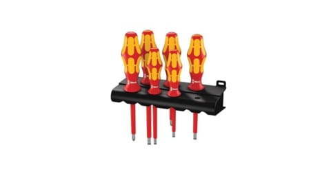 6-częściowy zestaw wkrętaków Kraftform testowanych pojedynczo wg IEC 60900. Indywidualnie kontrolowana izolacja poprzez zanurzenie w kąpieli wodnej pod napięciem 10000 V gwarantuje bezpieczeństwo pracy pod napięciem 1000 V. Rękojeść Kraftform zapewnia przyjemną i ergonomiczną pracę chroniąc dłoń przed powstawaniem pęcherzy i odcisków. Twarde strefy chwytu umożliwiają szybkie pokręcanie, miękkie strefy zapewniają przenoszenie wysokich momentów obrotowych. Część wkrętaków z końcówką Lasertip: wierzchołek „wgryza się" w gniazdo wkrętu i zapobiega wyślizgiwaniu się narzędzia. Z systemem wyszukiwania narzędzi "Take it easy": oznaczenie kolorystyczne rozmiaru. Kołnierz zapobiegający staczaniu się narzędzia z miejsca pracy. Z wieszakiem ułatwiającym przechowywanie.